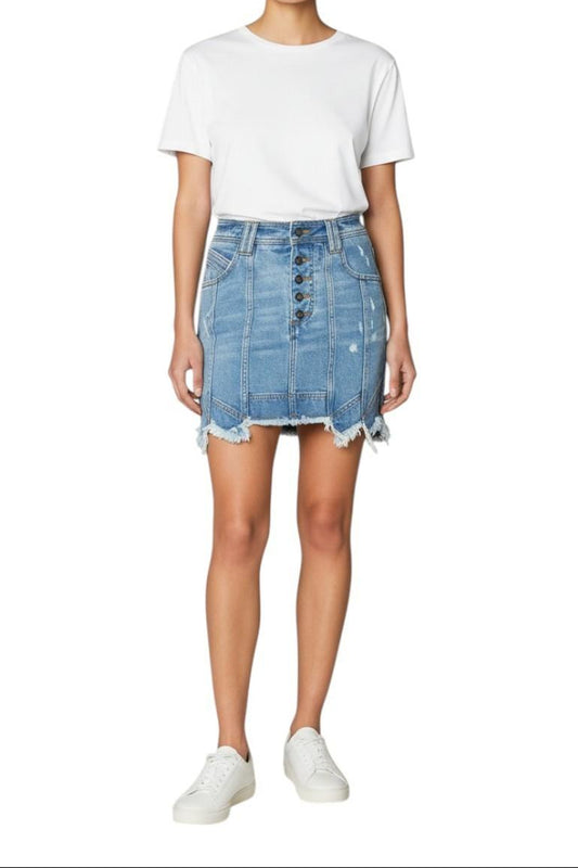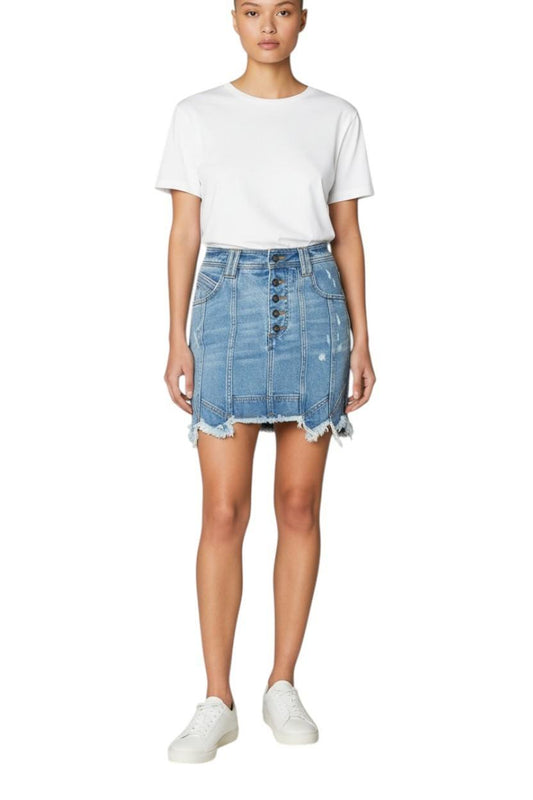 Aje. Crawford Denim Mini Skirt | Sz 12, Distressed, Stretch, As New, High Waist