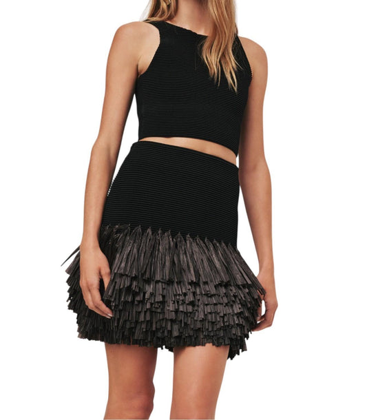 Aje Agave Knit Raffia Mini Skirt | Stretch, Black, Knit, Ribbed, High Waist