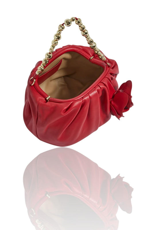Aje Ari Flower Clutch | Genuine Leather, Gold Crossbody/Top Handle, Magnetic