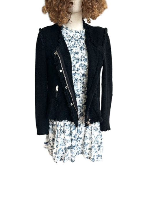 IRO Agnette Tweed Motorcycle Jacket | Black/Silver, Sz 38, 10 AU, Distressed
