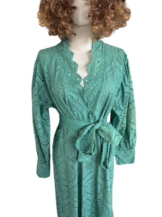 HANNAH ARTWEAR Broderie Anglaise Dress | Green, Maxi/Long, Belted, Embroidered