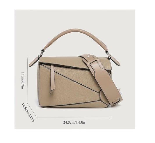 Geometric Puzzle Handbag, Shoulder/Crossbody, Beige/Camel, Mini, Vegan Leather