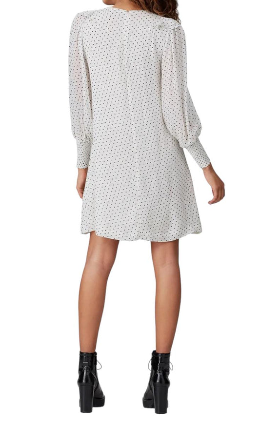 GANNI White/Black Polka Dot Ruffle Dress | Crepe/Viscose, Shift, Long Sleeve