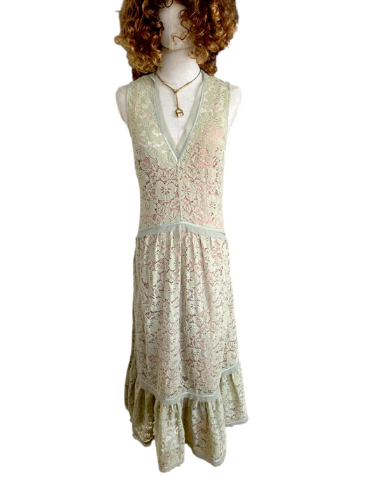 HANSEN & GRETEL Lace Midi Dress | Sz 1, Nude Slip, V-Neck, Party/Cocktail Dress
