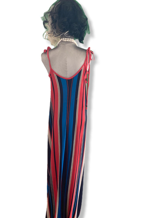 French Connection Maxi Dress | Flowing, Striped, Size 10, Viscose, Red / Blue