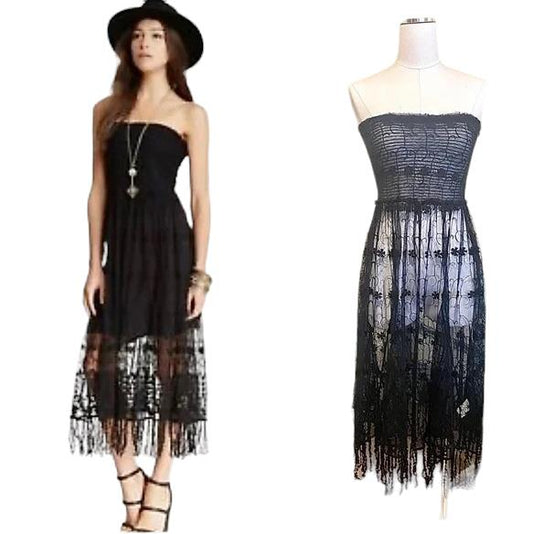 Free People Strapless Lace Stretch Dress | Black, Sz M, Sheer, Festival, Boho