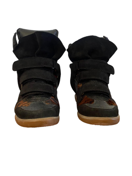 Isabel Marant Bayley Wedge Trainers | Black/Animal Print, Sz 41, Suede/Leather