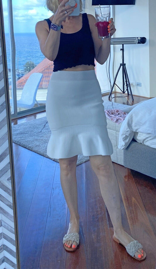 Scanlan Theodore Crepe Knit Skirt | White, Small, Italian Yarn, Peplum, Stretch