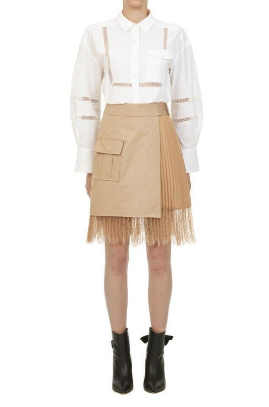 Self Portrait Canvas Wrap Mini Skirt | Utility, Lace, Beige, Pleats, High Waist