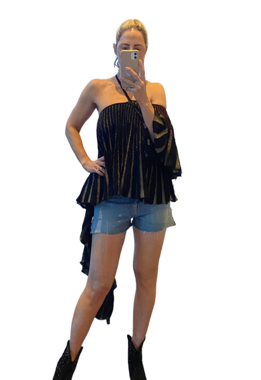 Sass & Bide Fiesta Barcelona Top | Sz L, Black/Gold, Off/One Shoulder, Festival