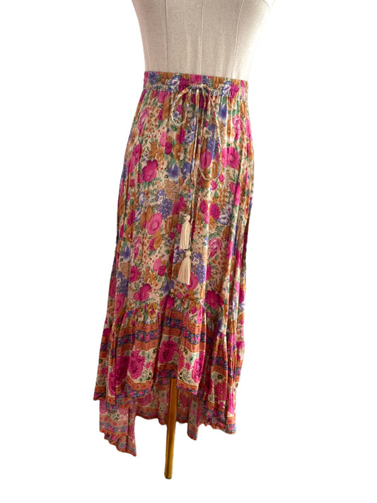 Wilde Bella Boho Floral Skirt | Sz S/M, High/Low, Tassels, Byron Bay Brand
