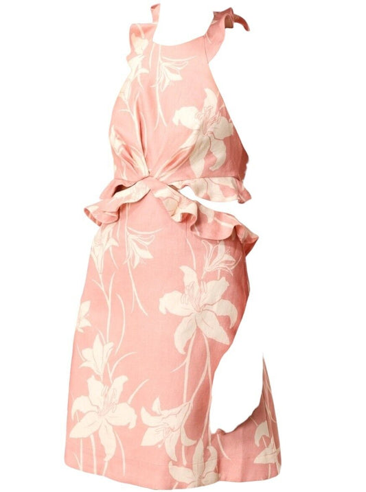 Zimmermann Acadian Tie Back Mini Dress | Pink/White Floral, Cut Out, Frills