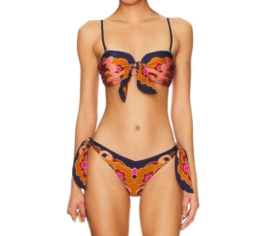 Zimmermann Acadian Scarf Tie Bra | Bikini Top, Navy/Pink Paisley, Tie Bandeau
