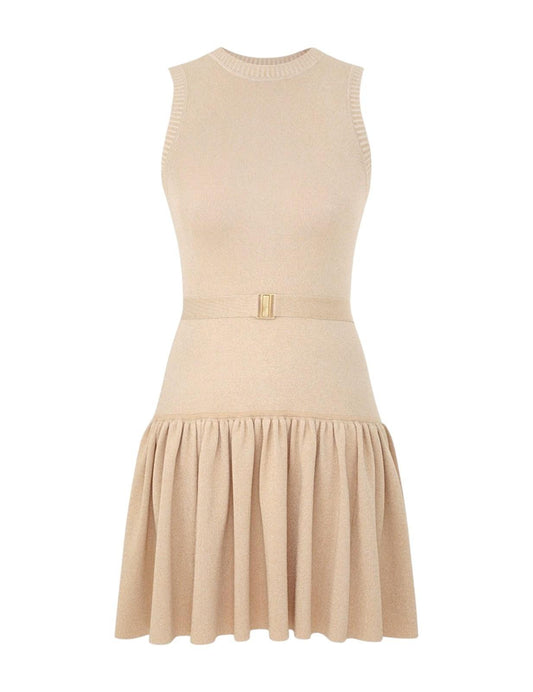 Zimmermann Acacia Metallic Mini Dress | Cream Gold, Waist Belt, Lurex, Fit+Flare