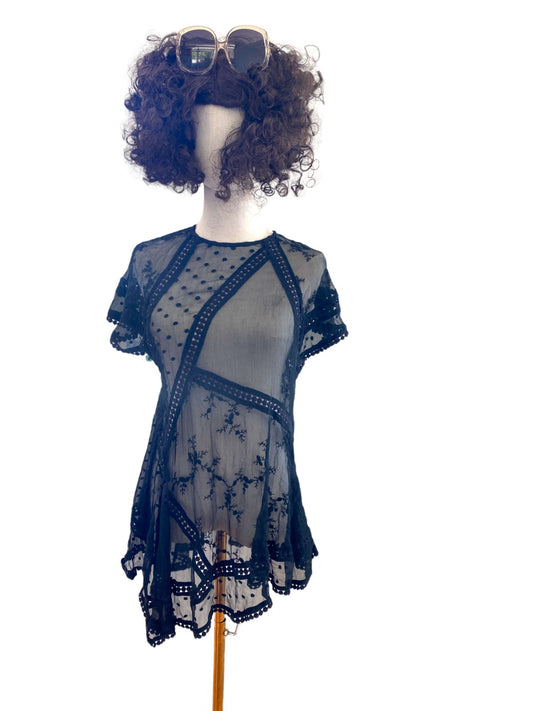Zimmermann Black Sheer Silk Top / Blouse | Lace, Embroidery, Asymmetric, Black
