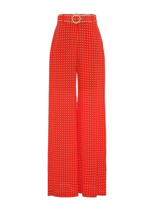 Zimmermann Belted Pant | Red/ Cream Dot, High Waist, Wide Leg, White Side Stripe