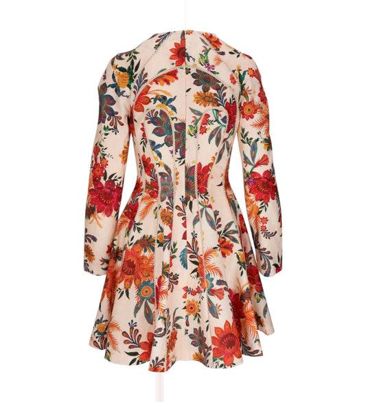 Zimmermann Ginger Fit and Flare Mini Dress | Ivory Floral, Linen, Long Sleeve
