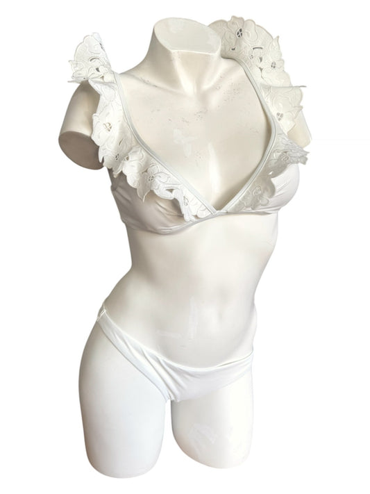 Zimmermann Golden Embroidery Frill Bikini | White, Shoulder Frills, Low Rise