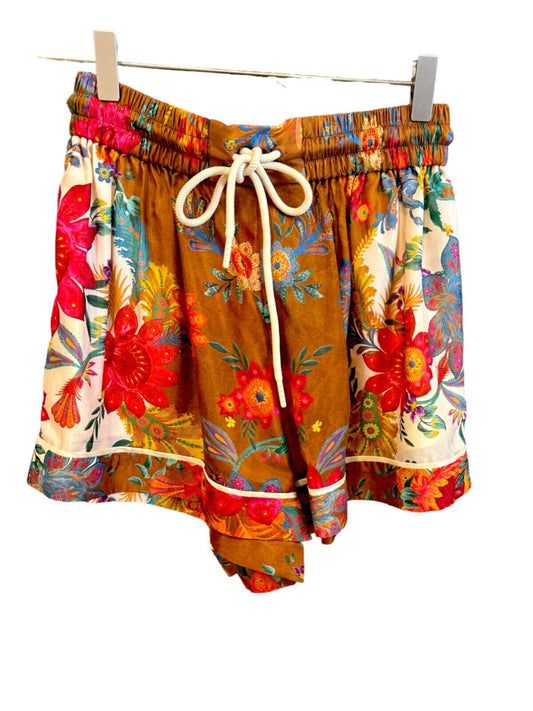 Zimmermann Ginger Relaxed Short |Cream/Brown Floral, 100% Silk, Drawstring Waist