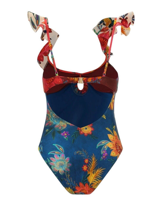 Zimmermann Ginger Frill Shoulder One Piece |Spliced, Floral, Backless, Tie Front