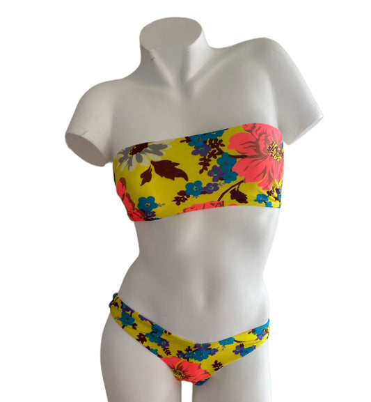 Zimmermann Estelle Bandeau Bikini BOTTOMS| Yellow Floral, Low Rise Bottoms, Swim