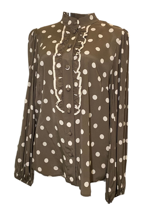 Zimmermann Frill Blouse | Khaki Olive/Cream Polka Dot, Spun Silk, Dolman Sleeves