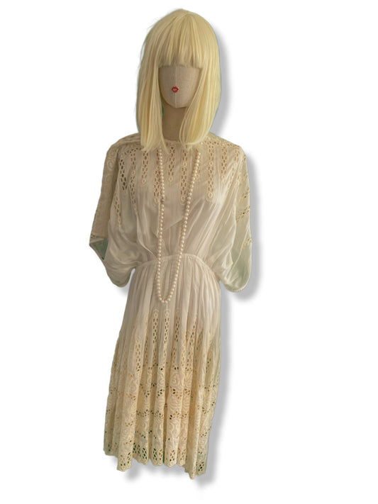 Zimmermann Eyelet Dress | Midi, Cream, Embroidery, Silk / Cotton, Kimono Size 1