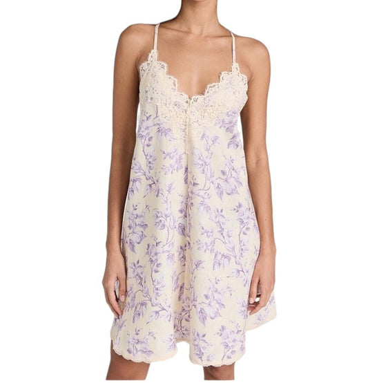 Zimmermann Halliday Swing Mini Dress | Lilac Floral, Linen, Lace Trim, Backless