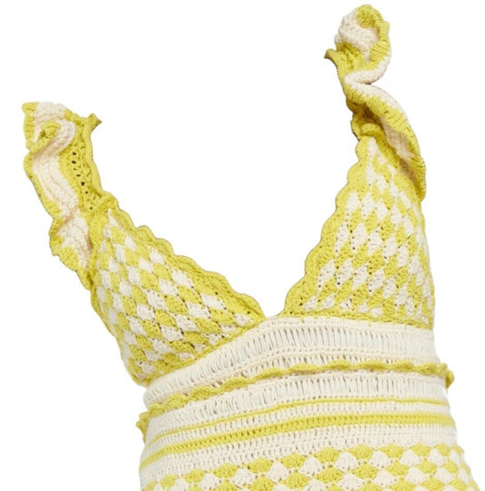 Zimmermann Halycon Crochet Frill Mini Dress | Yellow/Cream, Tiered, Cotton