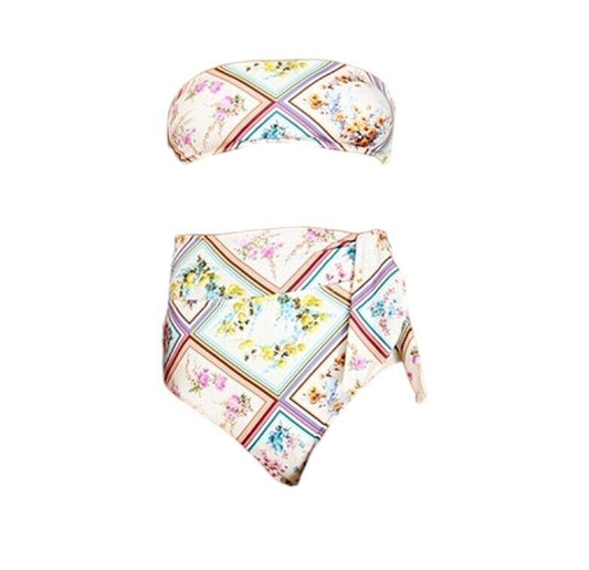 Zimmermann Halycon Tie Bandeau Bikini | High Waist, Waist Tie, Floral, White