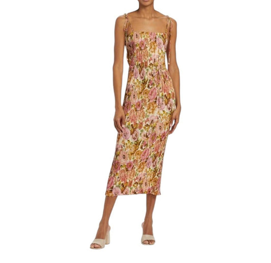 Zimmermann Golden Pleated Slip Dress | Pink Floral, Tie Shoulder, Beach Midi