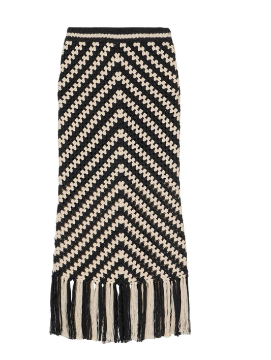 Zimmermann Halliday Hand Crochet Skirt | Chevron, Black+White, Knitted, Midi