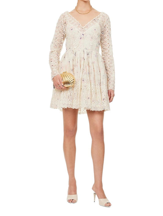 Zimmermann Halliday Mini Dress | Ivory Watercolour Floral, White, Embroidered