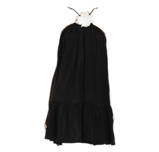 Zimmermann Halter Neck Mini Dress | Black, Silk, Flower Brooch, Optional Belt