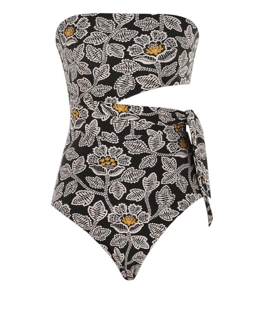 Zimmermann Ottie Scarf Tie One Piece | Black Floral, Cut Out, Bandeau, Straps