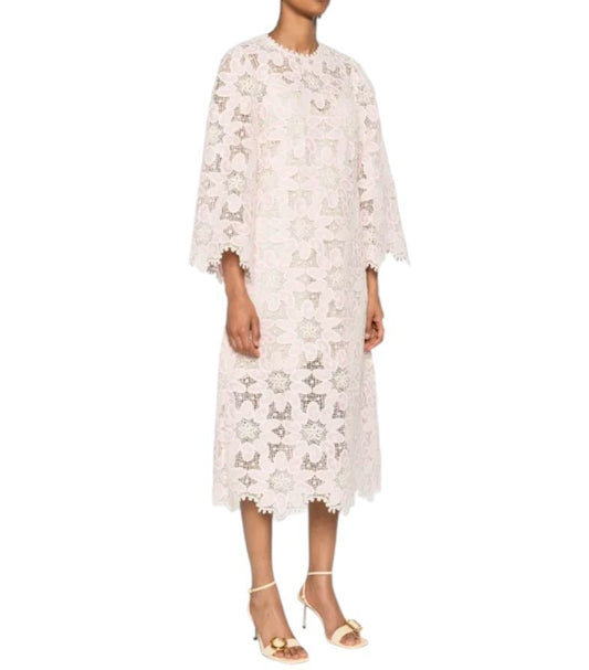 Zimmermann Ottie Lace Midi Dress |Pink/White/Cream, Overlay, Cotton, Long Sleeve