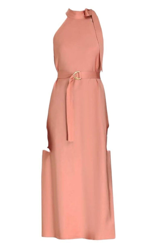Zimmermann Neck Tie Bias Dress | Lipstick/Peach/Pink, Belt, Linen/Viscose