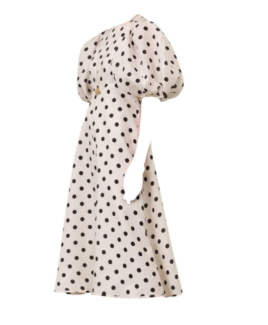 Zimmermann Midi Day Dress | Black/White Polka Dot, Blouson/Puff sleeves, Linen
