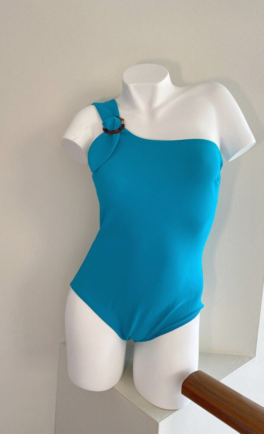 Zimmermann Nina Buckle One Piece | Turquoise, Tortoise Shell, One Shoulder