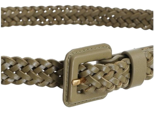Zimmermann Narrow Woven Belt | Khaki / Olive, Adjustable Buckle, Skinny, Leather