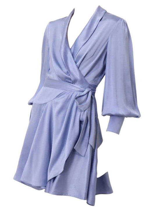 Zimmermann Silk Wrap Mini Dress | Hydrangea / Light Blue, Silk, Cocktail, Dolman