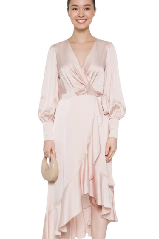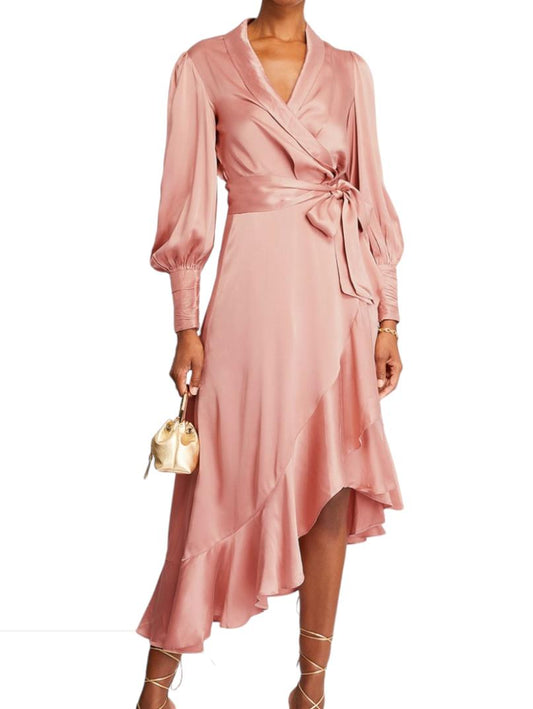 Zimmermann Silk Wrap Midi Dress | Dusty Pale Pink, Silk Cocktail, Dolman Sleeves