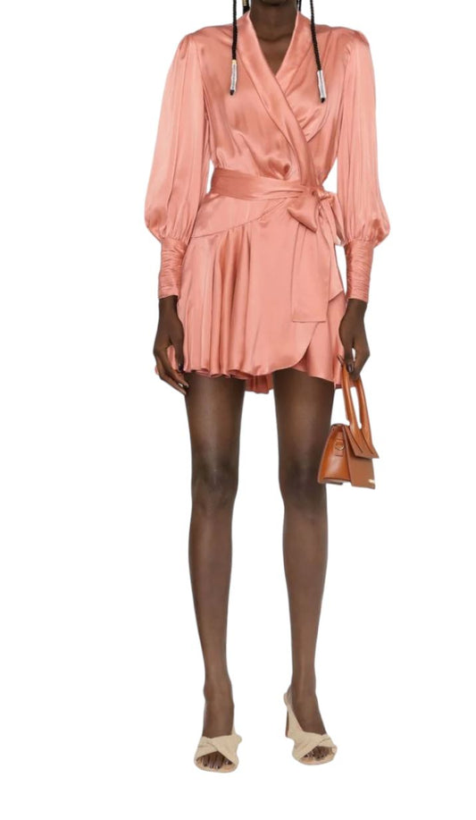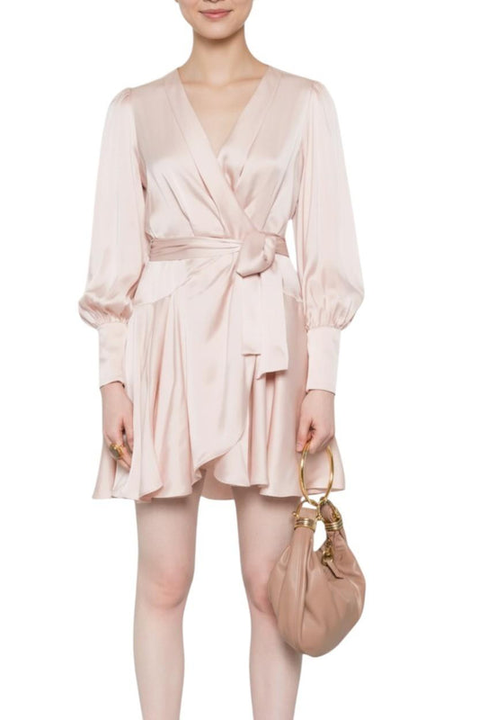 Zimmermann Silk Wrap Mini Dress | Light Pink, Silk, Cocktail, Dolman Sleeves