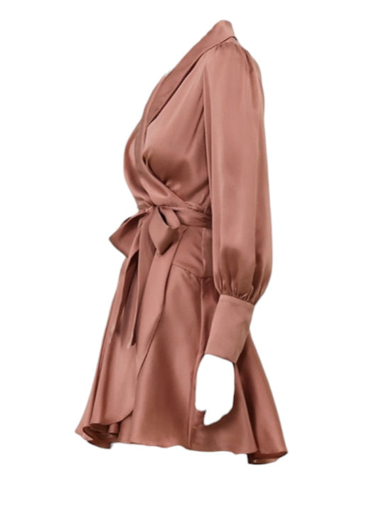 Zimmermann Silk Wrap Mini Dress | Dusty Pink, Sueded Silk Cocktail, Party Dress