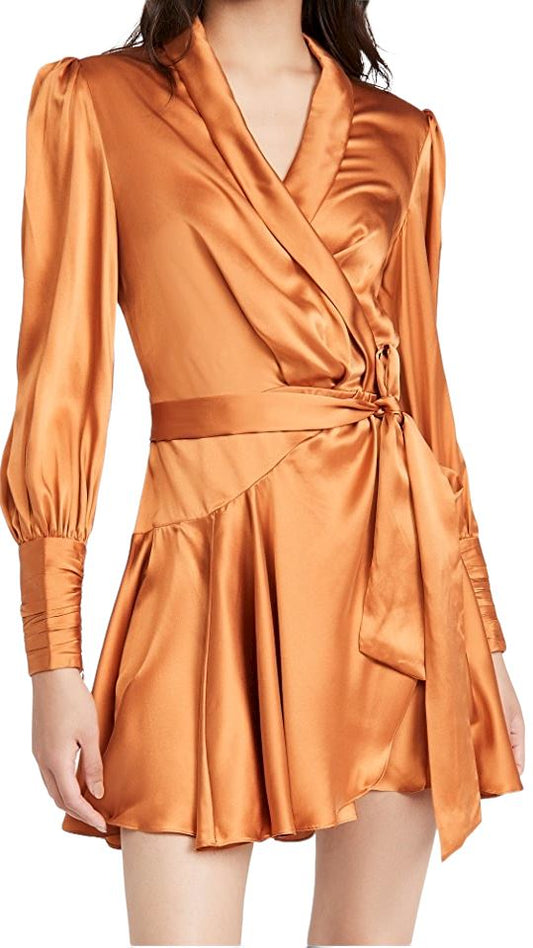 Zimmermann Silk Wrap Mini Dress | Sienna / Rust, Sueded Silk Cocktail, Party