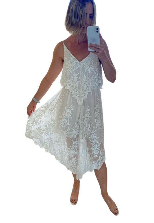 Zimmermann Silk Lace Hanky Dress | White/Cream, Lined, Embroidery, Size 1