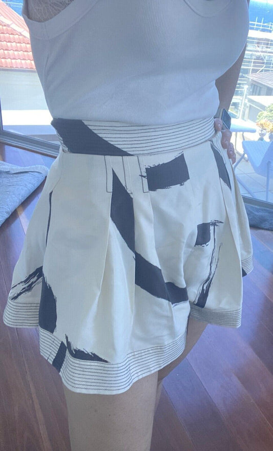 Zimmermann Silk Shorts | High Waist, Off-White/Cream & Black, Top Stitch, Size 1