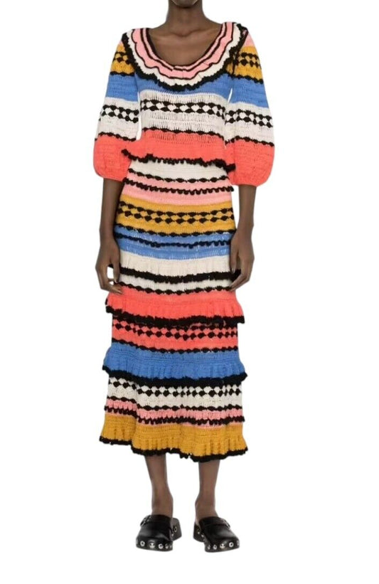 Zimmermann Tiggy Frill Tiered Skirt | Crochet, Navy Multi, Colourful, Stretch