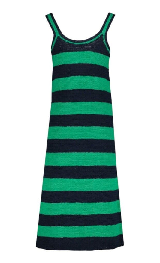 Zimmermann Tiggy Scoop Neck Midi Dress | Navy/Green, Stripe, Knitted/Crochet