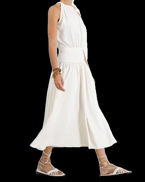 Zimmermann Tie Neck Picnic Dress | Thick Elastic Waistband, Pearl White $890 RP